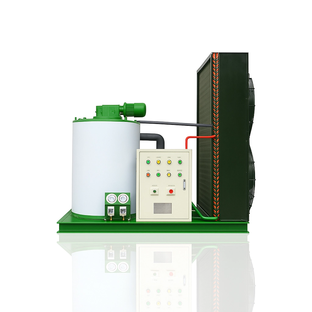 Mesin flake ice kapasitas 2 ton per hari dirancang untuk usaha yang membutuhkan volume es sedikit lebih besar, misalnya unit pengolahan ikan menengah, pemasok seafood ke restoran, atau perusahaan distribusi lokal. Dengan kapasitas ini, Anda bisa mengamankan stok es serpih untuk beberapa batch produksi dalam satu hari.